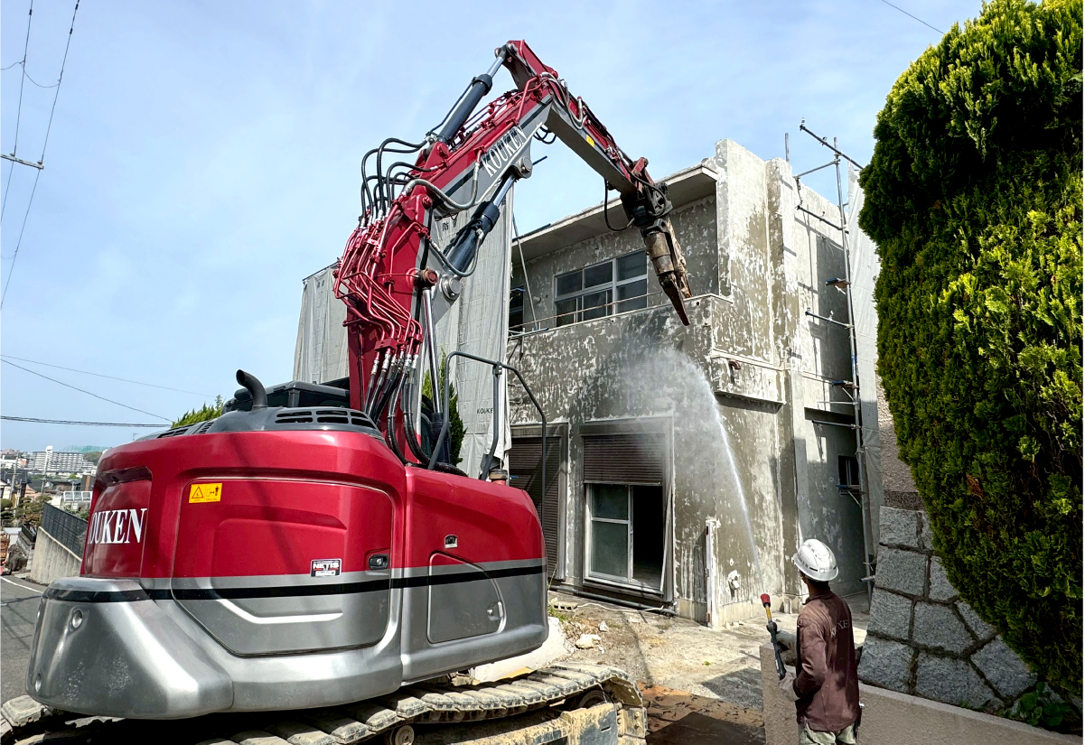 解体工事において最も重要なのは「安全」です。当社では現場の安全管理を徹底し、事故やトラブルを未然に防ぎます。また、近隣住民の方々への配慮も欠かしません。騒音・振動・粉塵の発生を最小限に抑えるための養生や防音対策をしっかりと行い、安心して工事を進められる環境を整えます。